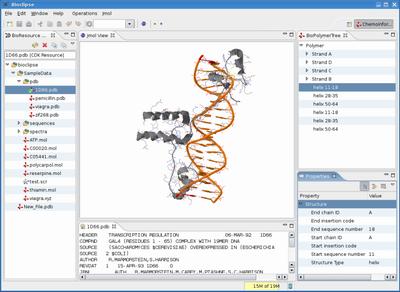 Bioclipse is a free, open source, workbench for chemo- and bioinformatics with powerful editing and visualization capabilities for molecules, sequences, proteins, spectra etc.The major features are:
