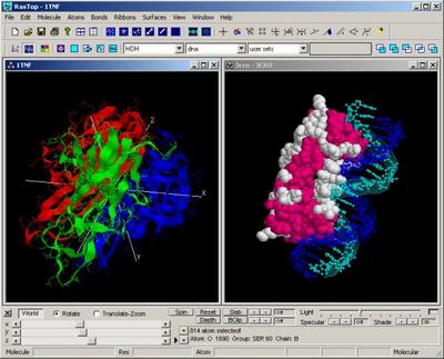 RasTop is a molecular visualization software adapted from the program RasMol initially developed by Roger Sayle. RasTop wraps a user-friendly graphical interface around the "RasMol molecular engine". The software allows several molecules to be opened in the same window and several windows to be opened at the same time. There is no need to type on the command line; each command in the menu generates its own script. Through an extended menu and a command panel, users can manipulate numerous molecules rapidly and learn about them. Work sessions are saved in script format and are fully regenerated with a simple mouse click.