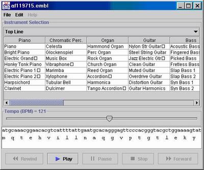 ProteinMusic is a Java program converting DNA sequences into music.