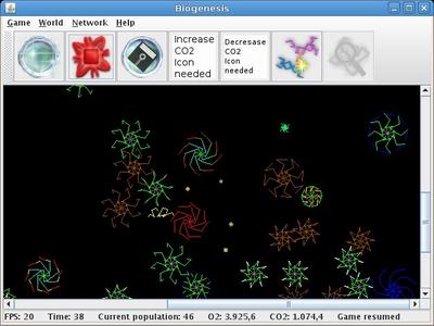 Biogenesis simulates in a visual fashion the processes involved in the evolution of unicellular organisms at nature. It tries to be a didactic approximation to the ideas of mutation or evolution and can be enjoyed also as an entertainment. It's intended to serve as a support to show students some basic biological facts.