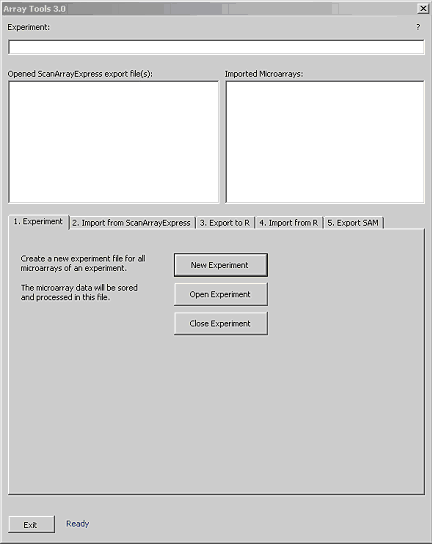 Array Tools is an Add-In for Microsoft Excel, which is designed to handle the import and export of Dictyostelium discoideum microarray data. It can be used to: