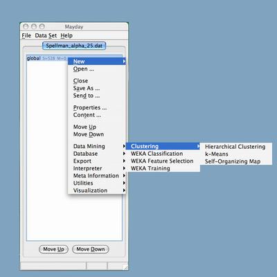Mayday is a workbench for visualization, analysis and storage of microarray data. It features a graphical user interface and supports the development and integration of existing and new analysis methods. Besides the infrastructural core functionality, Mayday offers a variety of plug-ins, such as various interactive viewers, a connection to the R statistical environment, a connection to SQL-based databases, and different clustering methods, including phylogenetic methods. In addition, so-called meta information objects are provided for annotation of the microarray data allowing integration of data from different sources, which is a feature that, for instance, is employed in the enhanced heatmap visualization.