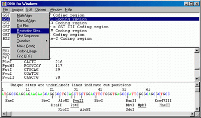 DNA for Windows is a compact, easy to use DNA analysis program, ideal for small-scale sequencing projects. It is particularly suited to working with chromatogram files from ABI machines, and is one of the few programs able to edit as well as view these files. The program has powerful DNA translation and restriction enzyme analysis facilities, and works with external programs to produce multiple alignments and contigs with ease.