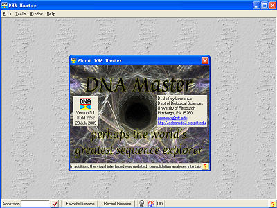DNA Master is a freeware DNA sequence editor and analysis package. I only ask that users register the program and send interested parties here to pick up a version. This program is quite powerful in what it can do, and as such does not limit itself in taking up resources. A fast computer with 512 MB of memory (or more) is recommended; greater amounts of memory are required for some functions. The installation of DNA Master requires setting up the Borland database driver subsystem. These files are also used in the Strain Manager, Oligo manager, Chemical Manager, and Invoice Manager programs.