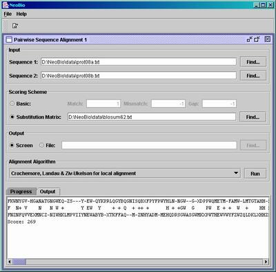 NeoBio is a Java class library of Computational Biology Algorithms. The current version consists mainly of pairwise sequence alignment algorithms such as the classical dynamic programming methods of Needleman-Wunsch and Smith-Waterman.