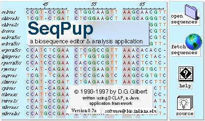SeqPup is a biological sequence editor and analysis program. It includes links to network services and external analysis programs.
