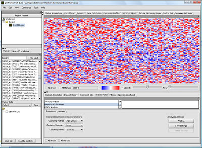 providing access to client- and server-side computational analysis tools such as t-test analysis, hierarchical clustering, self organizing maps, regulatory neworks reconstruction, BLAST searches, pattern/motif discovery, etc.