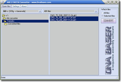 ABI to FASTA Converter offers a great relief for molecular biologists that must convert hundreds or thousands of ABI/AB chromatogram files manually. With this automatic ABI to FASTA Converter you can convert hundreds of ABI chromatogram files in seconds. All with A SINGLE PUSH OF A BUTTON!