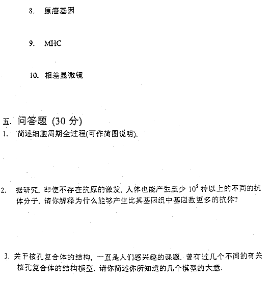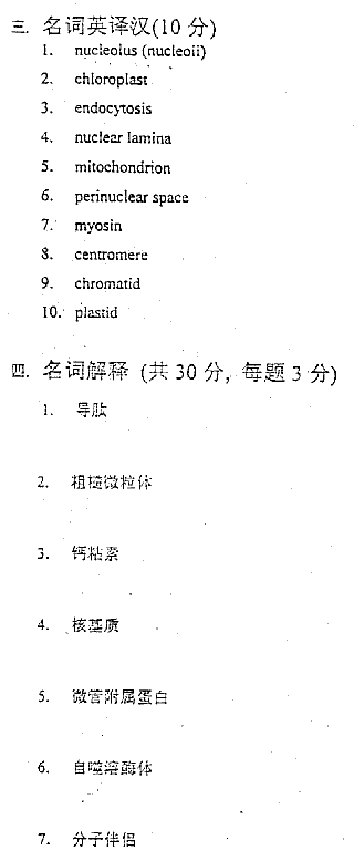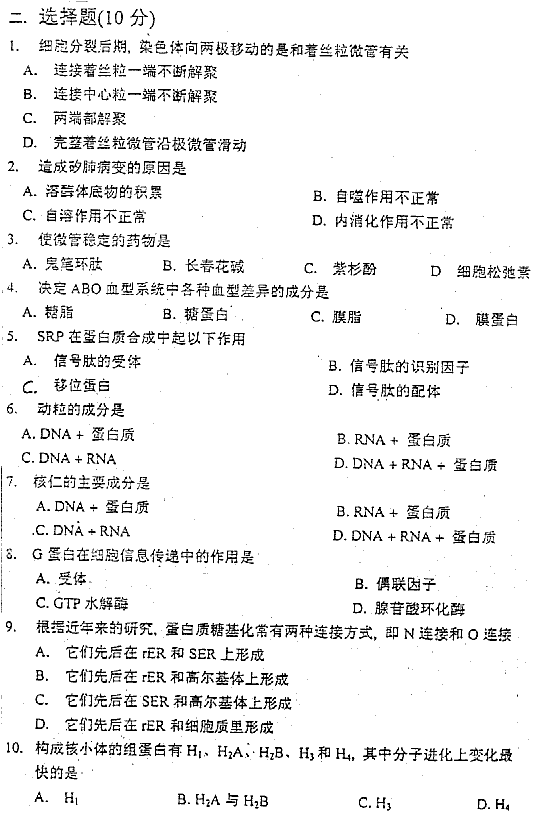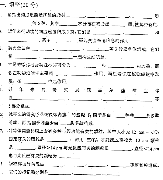 考試科目:細(xì)胞生物學(xué) (98)