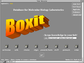 BOXIT is an easy to use FileMaker Pro relational database that helps collect, store and organize information about all your antibodies, cells, oligos, plasmids/hosts and other biological samples.