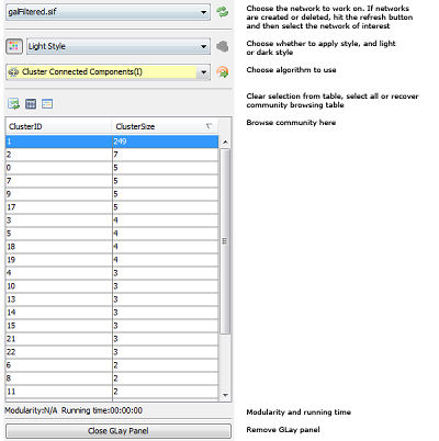 GLay is a cytoscape plugin that offers an assorted collection of community analysis algorithms and layout functions, dynamically linked from igraph.