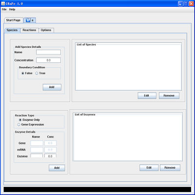 The GRaPe software was developed to enable the generation of generic rate equations for all reactions in a model. It encompasses an algorithm for estimating the concentration of proteins for a reaction to reach a particular steady state when kinetic parameters are unknown, and two robust methods for parameter estimation. It also allows for the seamless integration of gene expression or protein levels into a reaction and can generate equations for both transcription and translation.