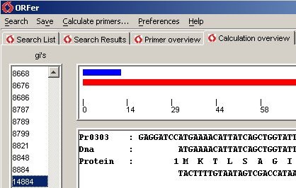 ORFprimer automatically calculates PCR primers for these sequences. The handling of ORFprimer is intuitional and quite simple using the default settings. In addition it provides many possibilities to change the calculation options before and also after the computation of primers, such as: