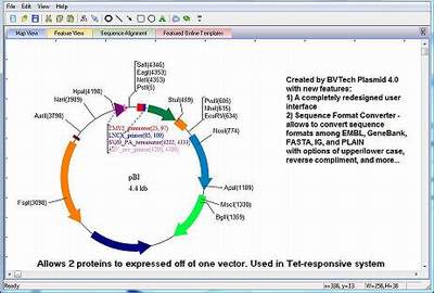 BVTech Plasmid is DNA plasmid drawing software.Ii is free software.You can use it to draw circle or linear plasmid map with double strands or single strand. You can label the plasmid with genes and restriction sites in different colors, text, and styles.