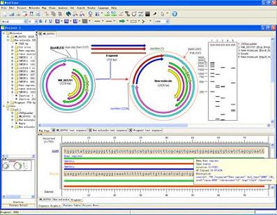 軟件擁有強(qiáng)大的虛擬克隆,模擬凝膠電泳,繪制克隆流程圖以及質(zhì)粒圖譜以及序列圖譜的顯示和分析功能。同時(shí)擁有中文操作界面。。