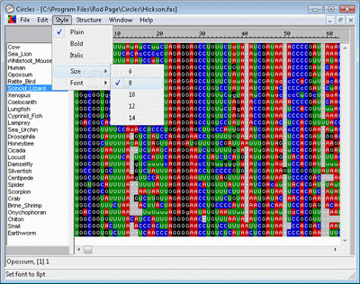 Circles is an experimental Windows 95/98/NT program for inferring RNA secondary structure using the comparative method. It provides a user-friendly interface to Jack Tabaska's maximum weight matching programs. The user can read in an alignment in FASTA, Clustal, or NEXUS format, compute a maximum weight matching, and export one or more secondary structures in standard formats.