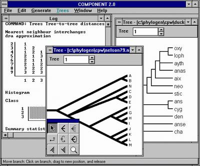 COMPONENT is a computer program for analysing evolutionary trees and is intended for use in studies of phylogeny, tree shape distribution, gene trees/species trees, host-parasite cospeciation, and biogeography.