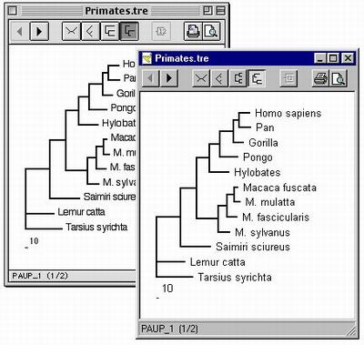 TreeView is a simple program for displaying phylogenies on Apple Macintosh and Windows PCs.TreeView provides a simple way to view the contents of a NEXUS, PHYLIP, Hennig86, Clustal, or other format tree file. While PAUP and MacClade have excellent tree printing facilities, there may be times you just want to view the trees without having to load the data set they were generated from. The PHYLIP package contains tree drawing programs which offer a greater variety of trees than TreeView, but are somewhat clumsy to use. The forthcoming PAUP* for Windows does not have a graphical interface, hence TreeView allows you to create publication quality trees from PAUP files, either directly, or by generating graphics files for editing by other programs.