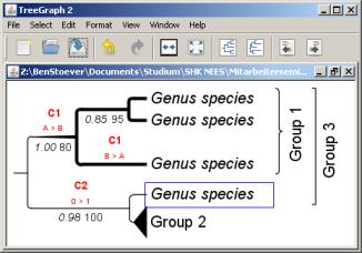 TreeGraph 2 is a graphical editor for phylogenetic trees which allows you to apply lots of graphical formats to the elements of your tree. Moreover, it supports several (visible or invisible) annotations (e.g. support values) for every branch or node. These annotations can be imported from Nexus tree files or text files containing data in a table (e.g. exported from a spreadsheet program).